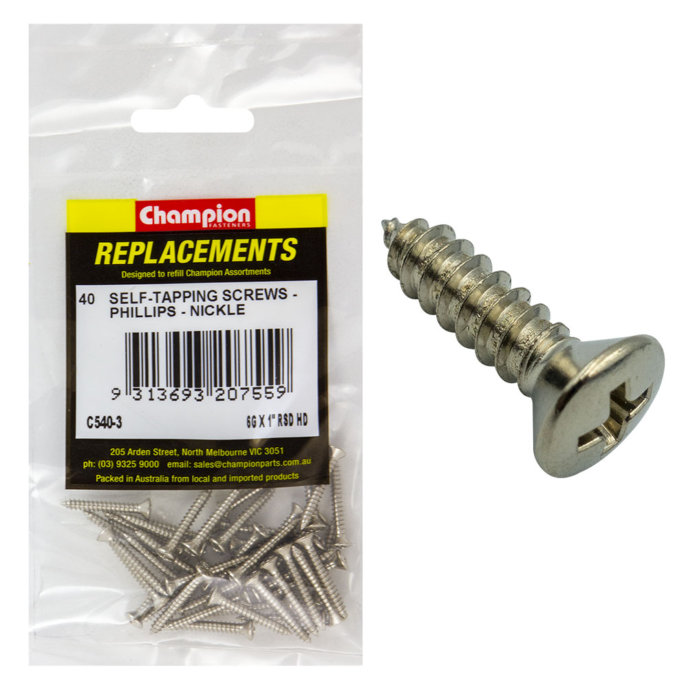 Champion 6G x 1in S/Tapping Screw Rsd Hd Phillips -40pk